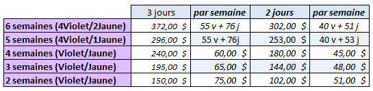| Camp de patin seulement: | Minimum de 2 semaines | 4 – 3 (sur autorisation seulement) ou 2 jours |