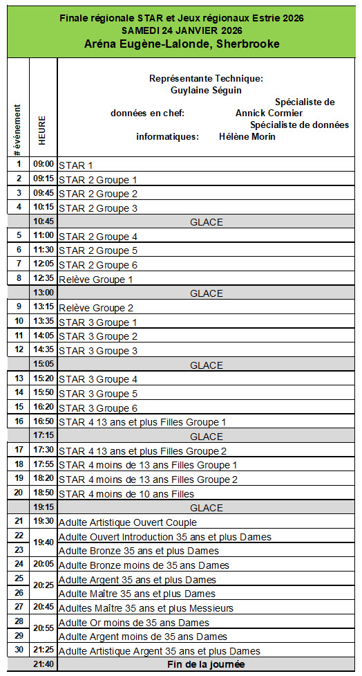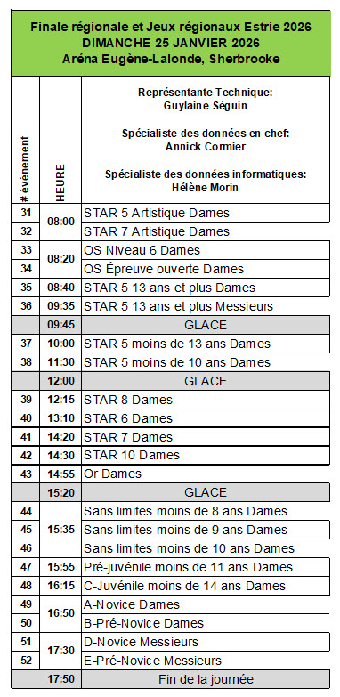Bienvenue sur la page des Finales régionales 2026 ! Le club hôte pour cette compétition Patinage Sherbrooke
