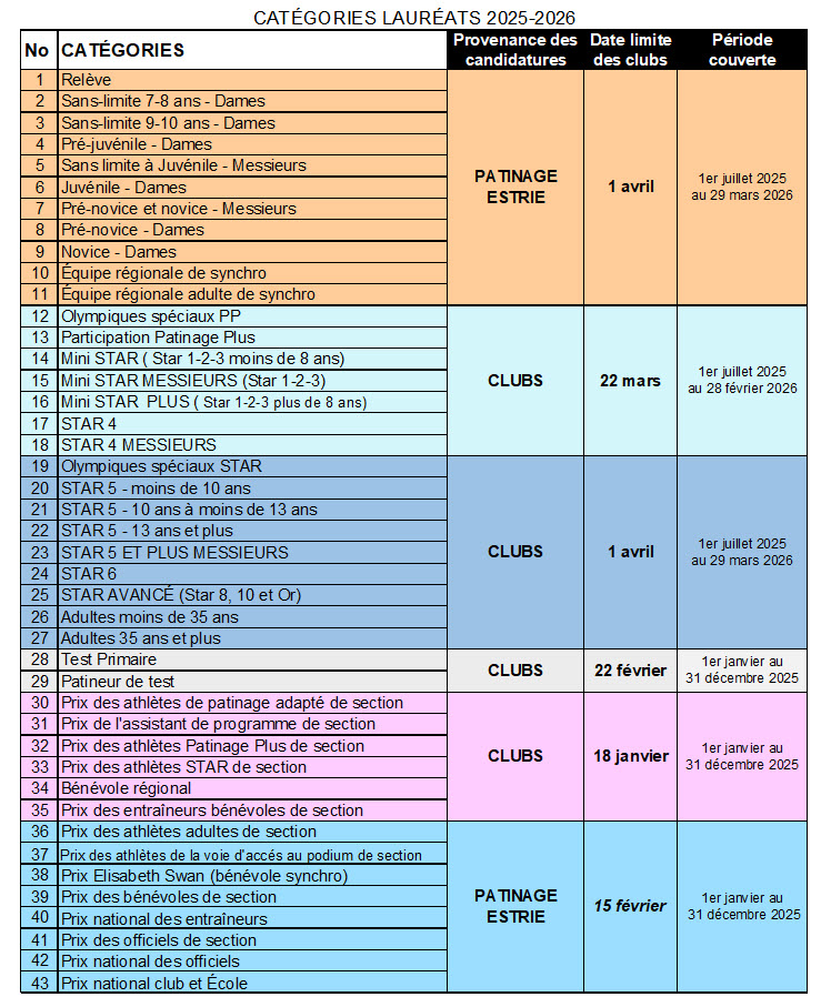 Lien d’informations pour les catégories de Patinage Québec et Patinage Canada